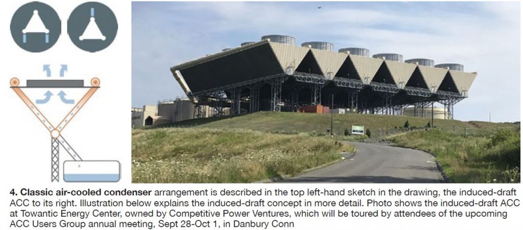 What might be of particular interest to owner/operators is that the ACCUG’s 2020 meeting, Sept 28-Oct 1, at the Danbury (Conn) Crown Plaza will include a tour of CPV’s Towantic Energy Center, which features and induced-draft ACC (Fig 4).