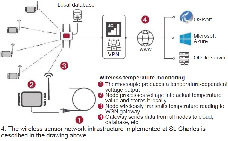 These concerns were expressed to Structural Integrity, which proposed a wireless sensor network and t/cs to remotely read data in near-real-time and incorporate the t/c readings into St. Charles’ PlantTrack online database.