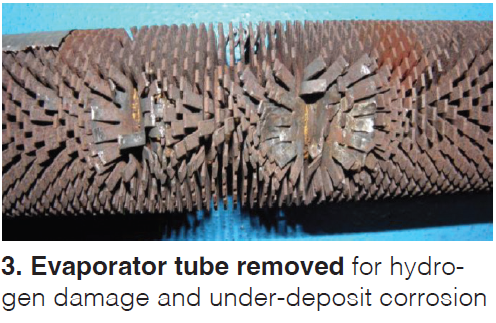 The area was in the first module of the evaporator, consisting of two rows of tubes, 92 tubes in each row. Two-thirds of the failures were in the lower section of the HRSG (elevations below 2.5 m/8 ft).