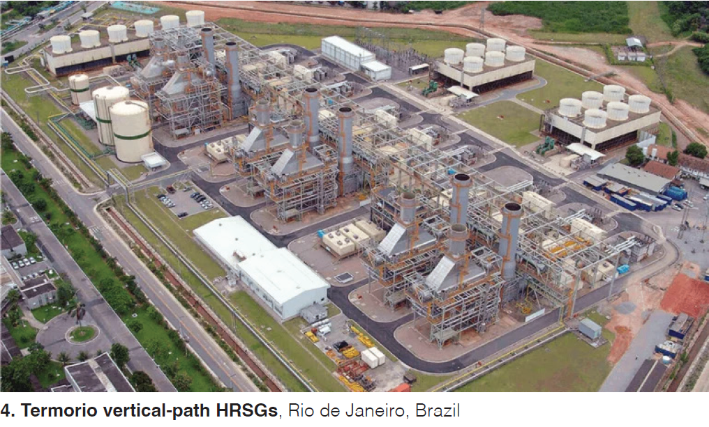 For vertical, he discussed two power plants: Termobahia and Termorio, both commissioned in 2004 with John Cockerill/CMI HRSGs designed for base load (Fig 4).