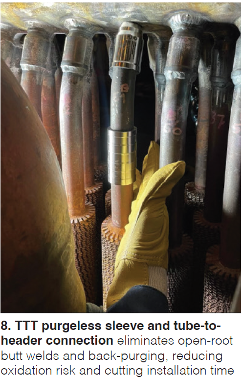 A testimony from EDF’s Guillaume Grognet was the driving force behind the value proposition. A short outage window at EDF’s advanced-class Bouchain CCGT prompted a shift away from conventional tube-to-header repair practices. The site opted for TTT’s Tuff Tube Header Connection (TTHC) hardware and installation support to address recurring HP economizer tube leaks while minimizing inspection burden and weld complexity (Fig 8).