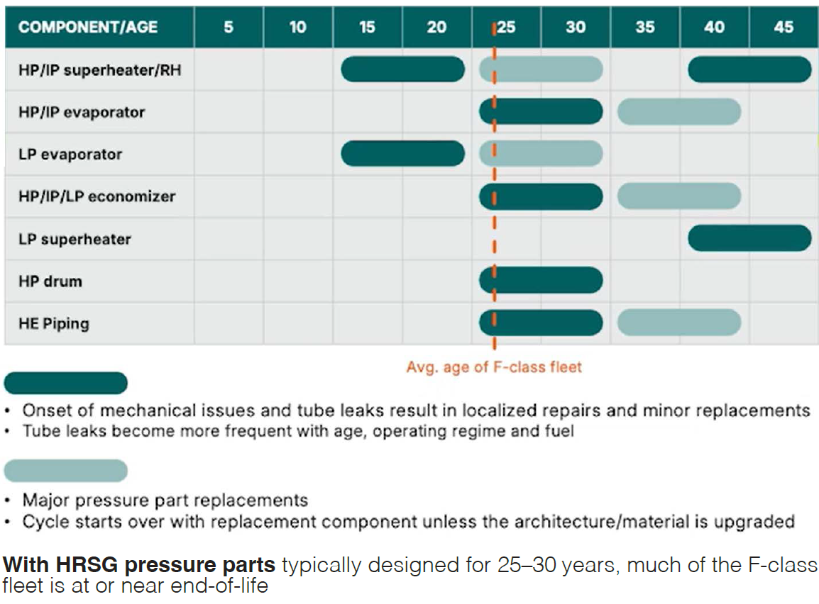 Why the urgency? Much of the F-class HRSG fleet is now past 20 years, and many units are entering a repair cycle characterized by more tube leaks, header cracking, and forced derates. When leak frequency and tube plugging begin to accelerate, owner/operators should evaluate whether continued repair-and-plug approaches still make sense versus scoped replacements that remove chronic pain and align the HRSG with planned or potential uprates.
