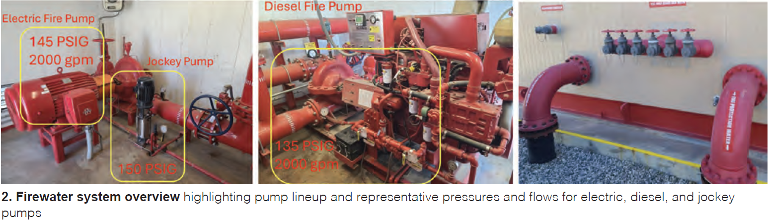 - Firewater system orientation. Identify pump types and expected pressures and flows to support hydrant and sprinkler operations (Fig 2).