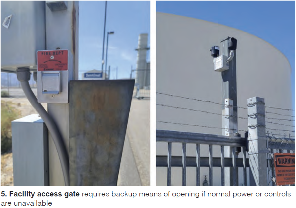 - Access and egress. Confirm which access gates need a backup means of opening if the site is de-energized and normal controls are unavailable (Fig 5).