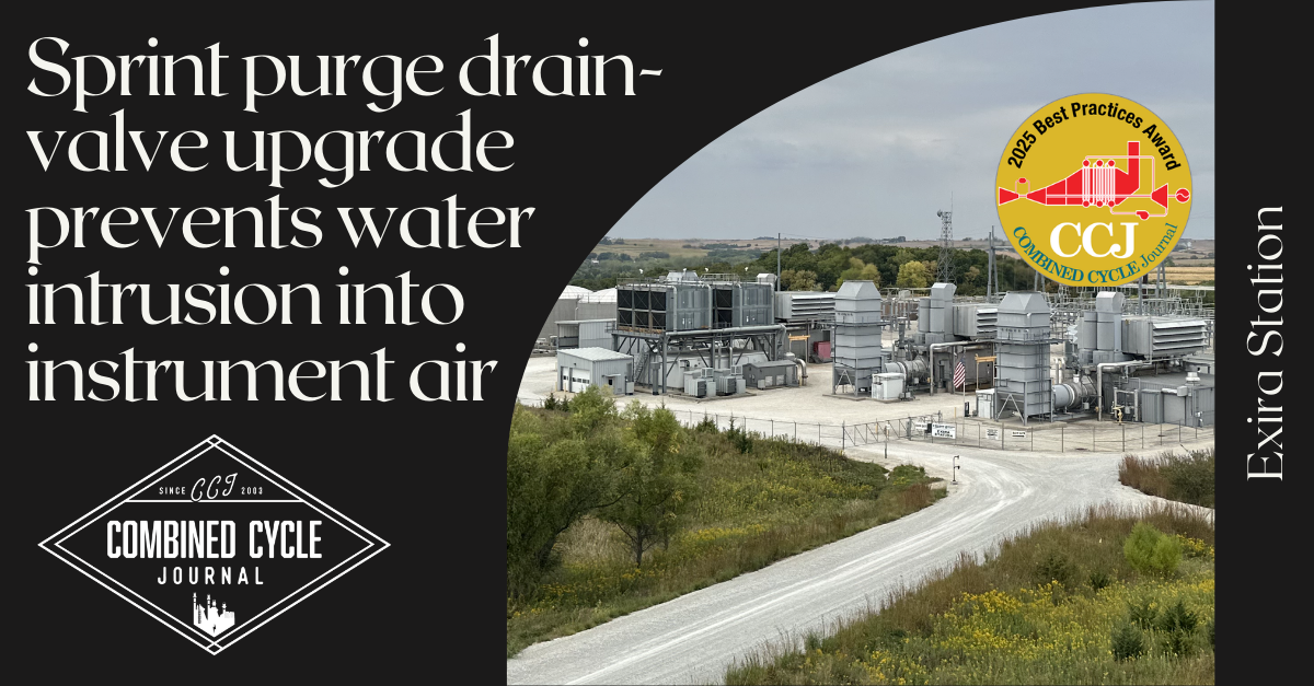 Background. Frequent cycling of the SPRINT system created a pathway for water to migrate into Exira Station’s instrument-air system, affecting multiple turbine and balance-of-plant functions. Because the instrument-air header supports critical purge and actuation needs across the plant, moisture carryover became a reliability issue, especially during cold Midwest winters. The station eliminated the problem by adding opposed solenoid drain valves to the SPRINT purge lines, a hardware-only change that required no control system modifications.